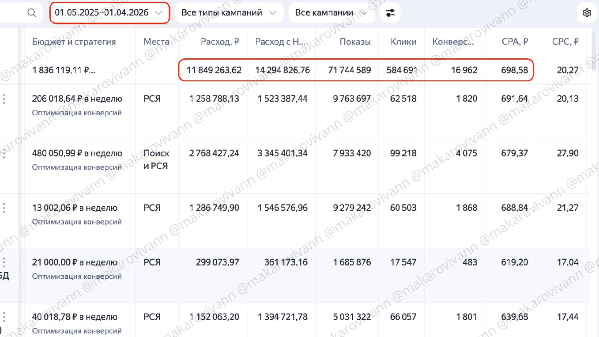 Для различных ниш и для разных задач бюджет формируется индивидуально. Если нет понимания, какой бюджет необходим для ведения рекламной кампании, рекомендую на этапе запуска пополнить рекламный бюджет на 100 000 руб. Чтобы на эти деньги получить как минимум 4 договора.